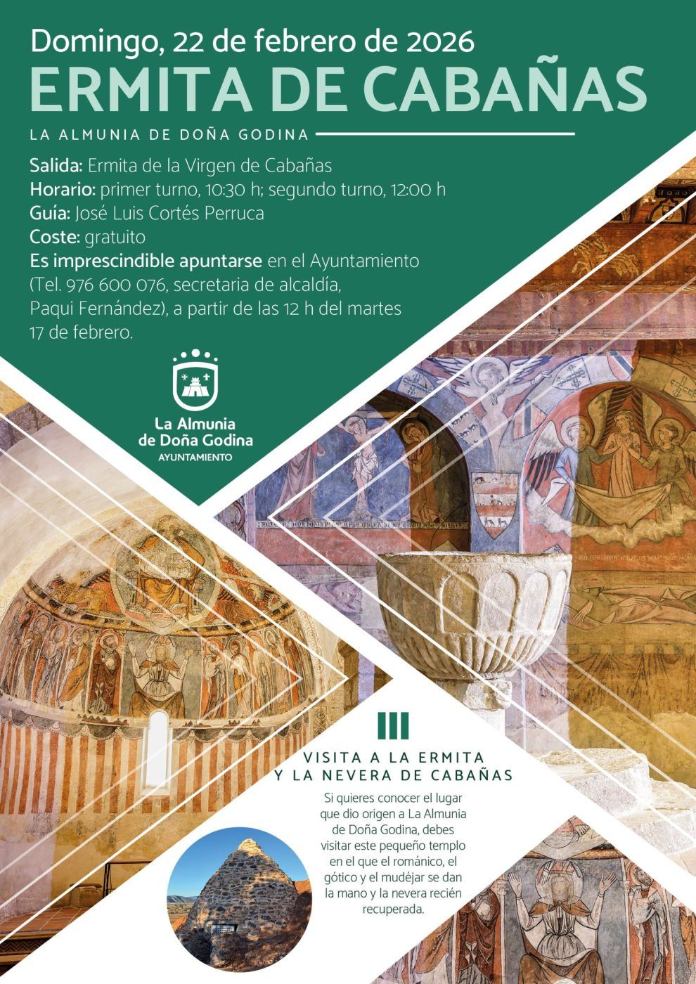 Es imprescindible apuntarse a partir de las 12 horas del martes 17 de febrero en el Ayuntamiento de La Almunia, en el teléfono 976 81 32 49, preguntando por la secretaria del Alcalde (Paqui Fernández).