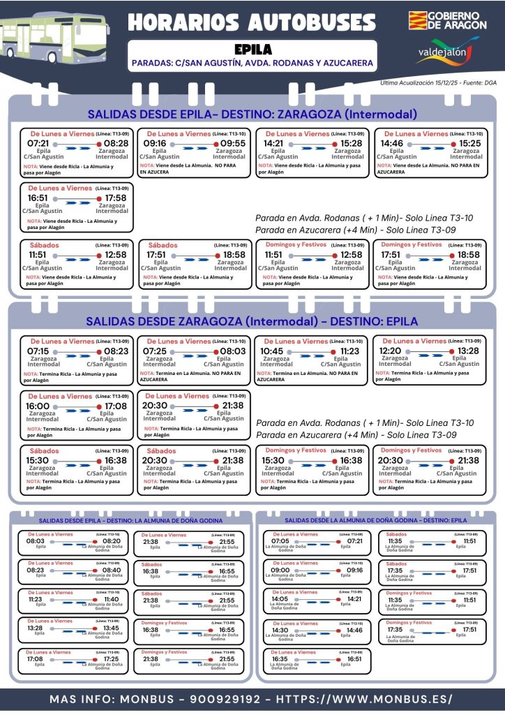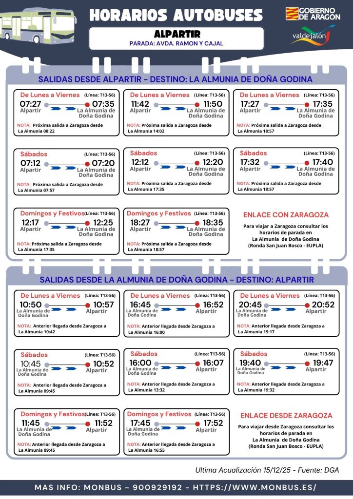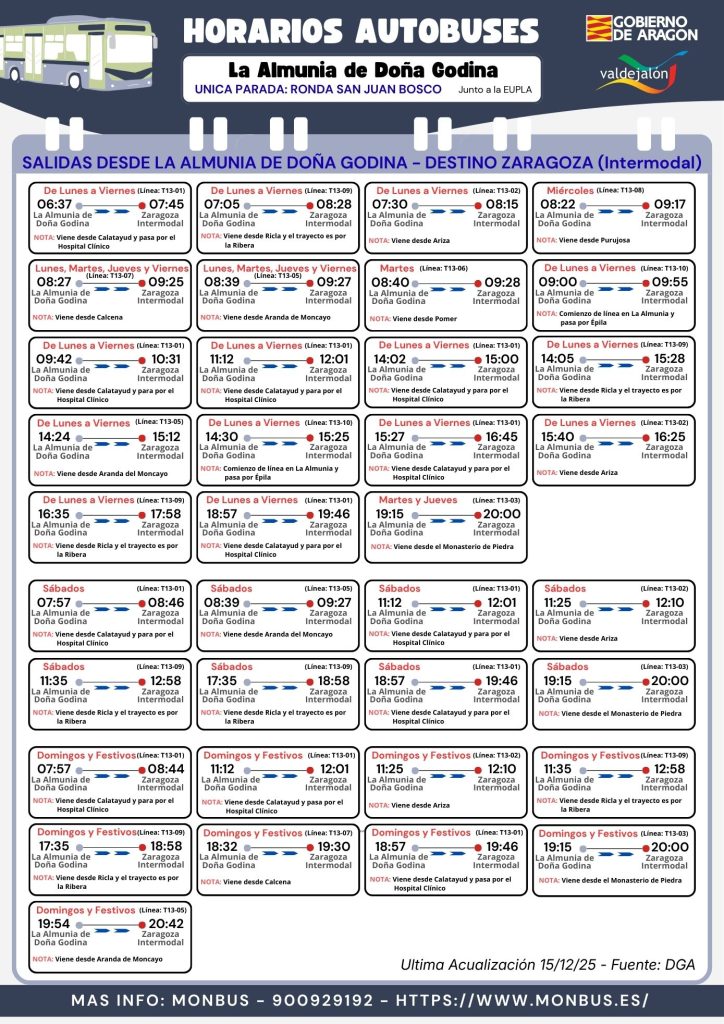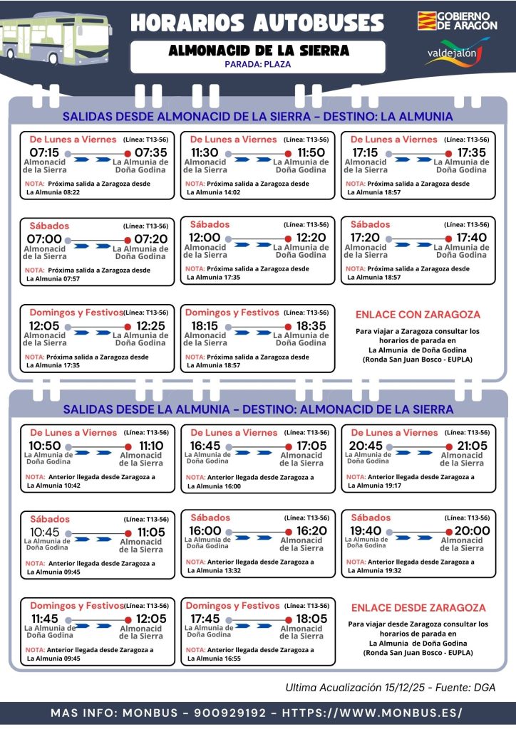 Para todos aquellos que queráis buscar la información de forma mas inmediata podéis hacerlo de la web oficial del servicio: https://www.monbus.es/es o través de la aplicación web realizada por La Almunia Radio