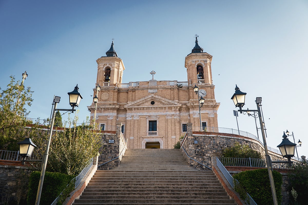 - Iglesia parroquial de Santa María la Mayor. La iglesia es un gran edificio rectangular, construido en paños de mampostería con encintados de ladrillo. En la fachada se empleó el ladrillo, sobre un basamento de piedra sillar arenisca. Es, según Gonzalo Borrás, “una de las fachadas monumentales mejor resueltas en la arquitectura aragonesa del momento”. Está concebida como una gran paramento de tres plantas: en la baja está la portada con el pórtico, entre pilastras, la segunda la ocupa el tímpano y la tercera el ático con la cruz en el centro y las dos torres en los laterales.