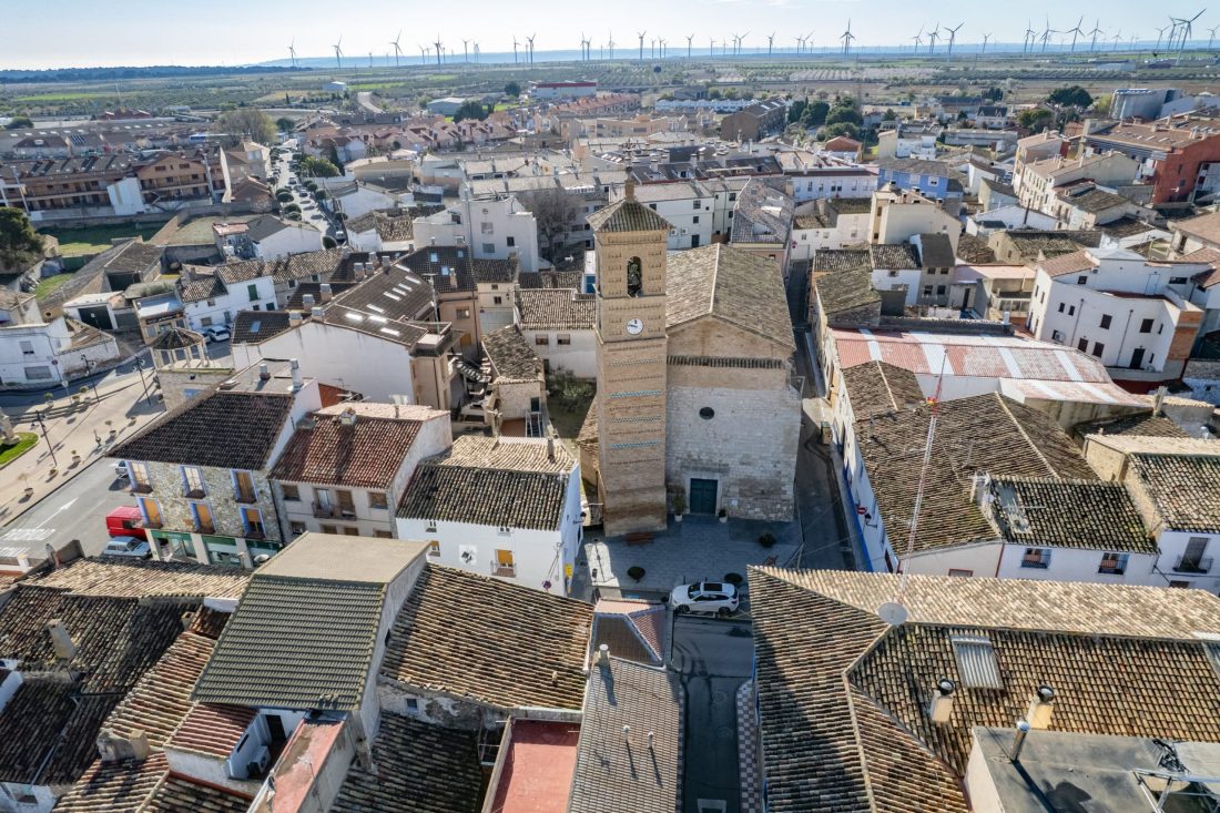La Muela se fundó en la parte alta de una elevación batida por los vientos, lo cual explica el espectáculo actual de los molinos eólicos que rodean y ocupan toda la muela.