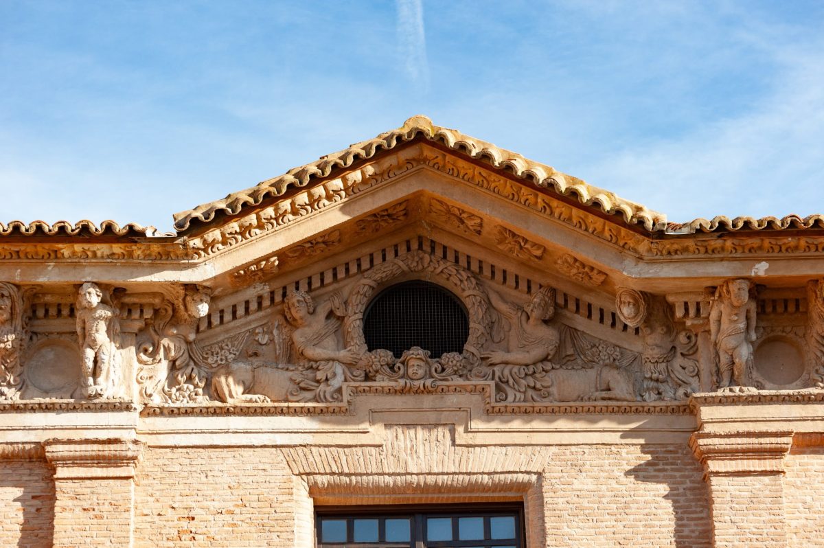 - El palacio de los condes de Morata. Fue el profesor Gonzalo Borrás Gualis quien se encargó de analizar todos los detalles en torno al palacio de Morata de Jalón. Lo hizo en un artículo publicado en el número 1 de la revista Artigrama ( 1985) que lleva el título de “Recepción aragonesa de la tipología del palacio barroco”. La tesis de Borrás es que entre 1665 y 1675 llegan a Aragón dos tipos de monumentos de singular importancia: el baldaquino y el palacio barroco.