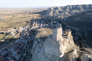 Una larga historia. El castillo domina, desde su situación en la parte alta del escarpe, tanto la población como el corredor del valle del Jalón en su prolongación hacia el Ebro. Su existencia data del siglo IX, ya que fue conquistado por el emir de Córdoba a los Banú Casi de Zaragoza. Era el año 882. Cincuenta años más tarde figura entre los conquistados por Abderramán III al rebelde Tuchibí, quien volvió a recobrarlo hasta su definitiva sumisión.