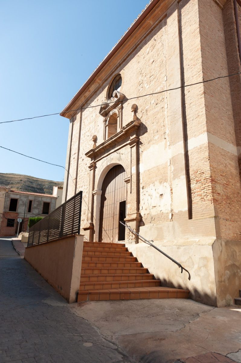 Es un edificio del siglo XVI. Tiene una sola nave de dos tramos con cabecera poligonal de cinco paños; este era el edificio primitivo. En el siglo XVII, ya a finales, se abrieron dos capillas de planta cuadrada, una a cada lado del primer tramo de la nave, y una sacristía anexa a la capilla de la derecha que se comunica con la cabecera. En ese mismo momento se edificó el coro de los pies sobre tres arcos, formando así un atrio en la planta baja. Ya en el siglo XX se construyeron otras dependencias en la parte derecha, en donde inicialmente pudo estar la puerta principal y la torre, sobre la capilla de la Virgen del Rosario.