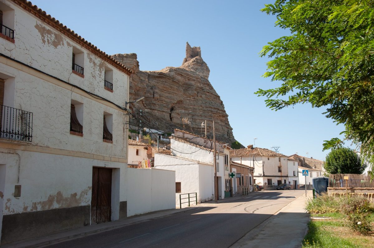 - Urbanismo. El caserío queda acomodado al barranco que desciende desde el castillo, ya en su tramo final. Está estructurado en torno a la calle principal que corre paralela a la montaña y otra transversal que desciende de la ladera. Prácticamente en el cruce de esta dos calles se ha conservado un arco sobre el que está edificado el Ayuntamiento, con su reloj de sol.